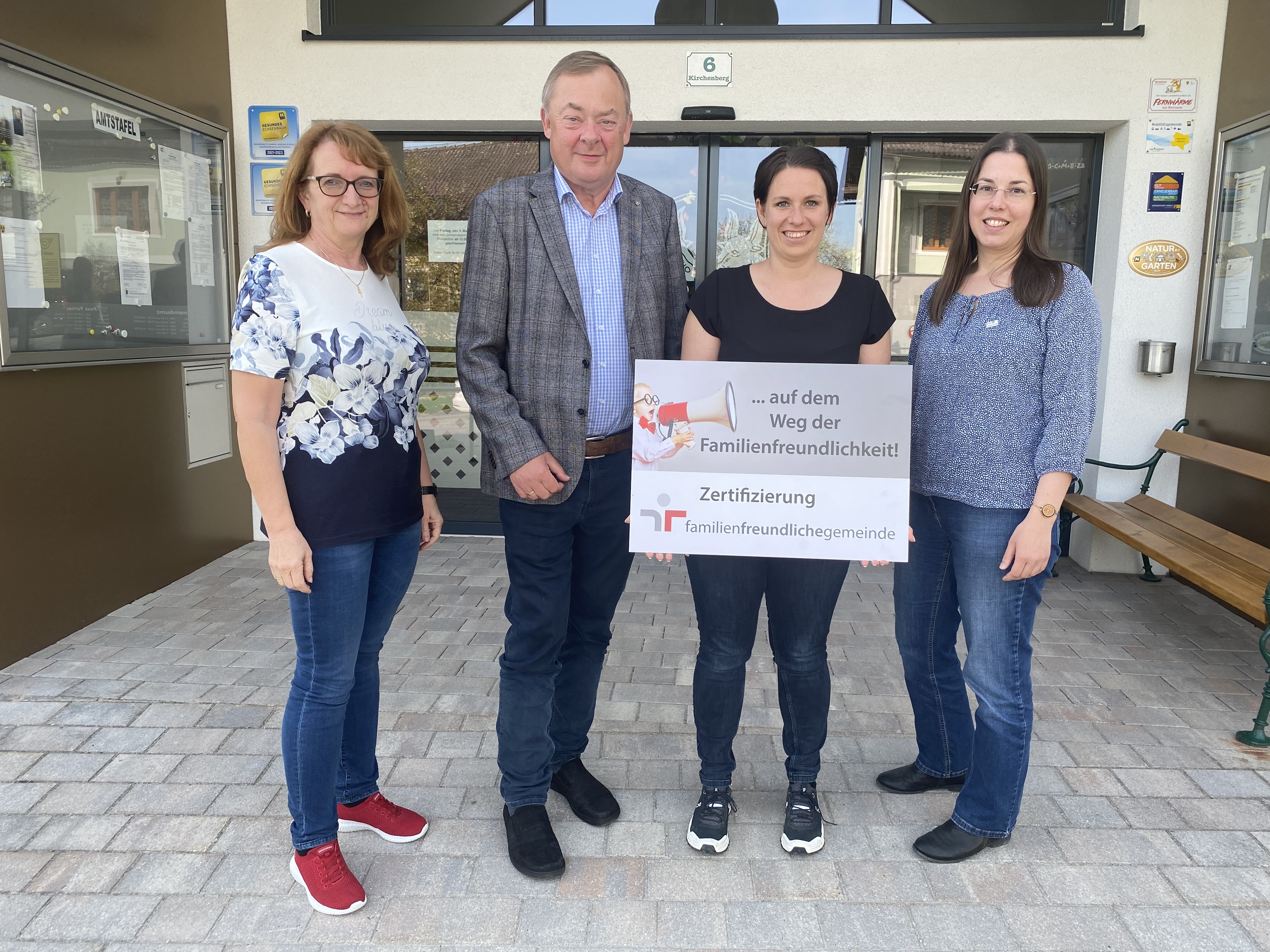 v.l.n.r.: Maria Kletzl, Bürgermeister Josef Baireder, Audit-Leiterin Kerstin Scharf und Prozessbegleiterin Manuela Hirzberger (NÖ.Regional) freuen sich auf den Projektstart zur Zertifizierung als "Kinder- und Familienfreundliche Gemeinde" Echsenbach (c) Marktgemeinde Echsenbach